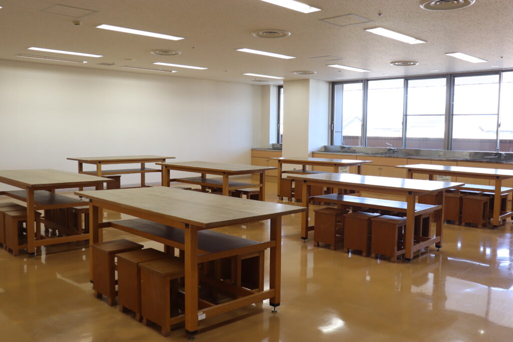 対応調理台(ガスコンロ付)、食卓、円椅子、